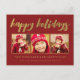 NOTA - Esta tipografía/partida está hecha de una imagen de Relieve metalizado de oro. ¡Da la bella y elegante ilusión de la estampación dorada sin ningún coste! ¡Todavía parece fabuloso impreso! Magnífica tipografía con letras de mano de Relieve metalizado de oro falso en la parte delantera de esta postal de diseño a la que puedes subir con 3 de tus propios retratos de fotos familiares de Navidades. Personaliza fácil y rápidamente esta tarjeta postal de diseñador impresa profesionalmente Happy Holidays aquí y ahora solo tecleando sobre el texto de ejemplo de arriba a la derecha en el área PERSONALIZE y luego subiendo fotos de tus propios navidades. Elegante, moda, escritura de oro simple y elegante/tipografía cursiva. La magnífica fotografía de muestra utilizada en esta plantilla es gracias a la talentosa fotógrafa Rebecca Vancuyk de Bright Tricks Photography en Houston, Texas, Estados Unidos www.brighttricksphotography.com/