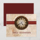Esta tarjeta postal de número de tabla de Boda de reloj antiguo presenta un reloj de época de época prominentemente centrado en la parte superior de una metalizado cadena de bolas y un elegante borde de rayas rojas oscuras. El aspecto angustiado del fondo de textura de papel grueso completa el ambiente anticuado de esta tarjeta de mesa única. Esta original postal con número de mesa boda es perfecta para un boda de inspiración vintage o steampunk. Fácil de personalizar, simplemente agregue los detalles de su boda en los campos de texto proporcionados. Haga clic en "Personalizar" para encontrar opciones adicionales para personalizar este diseño.