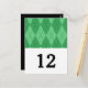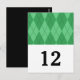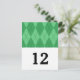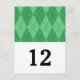 Tarjeta postal clásica y elegante número de tabla Boda Argyle con un sencillo fondo de argyle verde de diamante. Fácil de personalizar con los detalles de su boda. Para obtener más opciones de personalización, haga clic en el botón Personalizar.