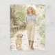 Envía una nota sincera con esta postal de acuarela soñadora que presenta a una joven paseando a su cachorro por un jardín primaveral en flor. Pintada en pasteles suaves, verdes suaves y neutros cálidos, este diseño inspirado en cottagecore evoca calma, alegría y encanto atemporal. Perfecto para saludos de primavera, notas de amistad, mensajes de agradecimiento o simplemente para alegrar el día de alguien. Ideal para amantes del arte floral, estética campestre e ilustraciones delicadas de acuarela.