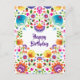 Hermosa composición folclórica con Feliz Cumpleaños en la parte inferior. Diseño inspirado en el arte popular polaco de la región de Lowicz. Las áreas de texto de la página de atrás son totalmente personalizables. Fondo blanco