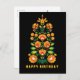 Hermosa composición folclórica con Feliz Cumpleaños en la parte inferior. Colores otoñales. Diseño inspirado en el arte popular polaco de la región de Lowicz. Las áreas de texto de la página de atrás son totalmente personalizables.