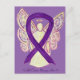 La imagen de la imagen de la imagen de la cinta de reconocimiento de color púrpura que se muestra en la imagen de la imagen de la postal de arte de ángel del ángel de la guarda. ¡Añade tus propias palabras o mensajes opcionales a la postal para tarjetas de ángel personalizadas! También puede eliminar el texto para una impresión de postal de ángel de arte solamente. Las postales de pintura de la cinta de ángel de la conciencia morada se pueden personalizar con mensajes personalizados para crear gran conciencia causando imágenes o imágenes para recaudadores de fondos, regalos de concientización u otros eventos especiales. Dale a este arte de ángel como regalo para cualquier ocasión.