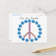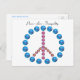 Obra de un símbolo de paz, mostrada en una postal, con las palabras "Paz - Amor - Tranquilidad".