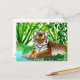 Un joven tigre de Sumatra sentado junto a un tranquilo río de la jungla en este diseño original de la ilustradora/diseñadora Carolyn McFann de Two Purring Cats Studio.