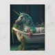 Tarjeta postal del unicornio de melena verde en la