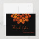 Tarjeta de agradecimiento oscura y dramática que presenta una flor de aster de cobre metálico moderno con texto personalizable sobre fondo negro.