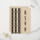 Elegante y refinada postal de la Boda Fronteriza Art Deco RSVP con un borde de patrón de deco negro sobre un fondo de textura de papel falso. Esta elegante postal de respuesta es una gran elección para un boda moderno. Fácil de personalizar, simplemente agregue los detalles de su boda en los campos de texto proporcionados. Haga clic en "Personalizar" para encontrar más opciones de personalización.