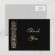 Una tarjeta postal con hermoso arte de manuscrito iluminado gótico de flores y hojas enrolladas sobre un fondo negro. La parte delantera dice Gracias, pero puedes cambiar el texto y elegir el estilo de letra y agregar un mensaje en la parte posterior.