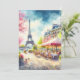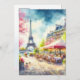 Esta postal cuenta con un retrato acuático de la Torre Eiffel en París, Francia.