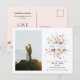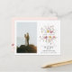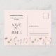 Una tarjeta postal para guardar la fecha bellamente diseñada con delicadas flores de acuarela en tonos pastel suaves. La tipografía elegante y el diseño minimalista crean un ambiente sofisticado y romántico, perfecto para anunciar su día especial. Totalmente personalizable con nombres, fecha y detalles personales.