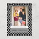 Elegante y moderno Elegante postal de fotos de vacaciones de celosías con un delicado diseño de enlosado blanco y un fondo negro. Esta moderna y sencilla tarjeta de fotos se puede personalizar fácilmente con una foto y un saludo personalizado de los Navidades. Para obtener más opciones de personalización, haga clic en Personalizar. Fotografía © Storytree Studios, Stanford, CA