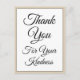 Este diseño de tarjeta postal de agradecimiento elegante presenta el mensaje "Gracias por su amabilidad" en la parte delantera, junto con un mensaje personalizable en la parte posterior. Podría ser utilizado para mostrar gratitud a alguien que ha hecho un acto especial.