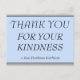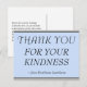 Este diseño de tarjeta postal de agradecimiento elegante presenta el mensaje "GRACIAS POR TU AMABILIDAD" en la parte delantera, junto con un mensaje personalizable en la parte posterior. Podría ser utilizado para mostrar gratitud a alguien que ha hecho algo especial.