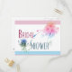 Flores decoran esta postal de ducha de color pastel. Delante y detrás del personalizar con detalles de ducha.