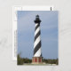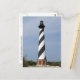El faro de Cape Hatteras en la orilla exterior de Carolina del Norte, con sus distintivas franjas espirales negras y blancas, contiene más de un millón de ladrillos y se puede ver su luz brillando a más de veinte millas de distancia en el mar en condiciones óptimas que marcan las traicioneras costas de los Arrecifes de Diamante. Amenazada por el cercano Océano Atlántico, la casa de luz que fue reubicada en un proyecto de 1999-2000, colocándola en terreno más seguro a 800 pies tierra adentro. Muchos han subido a la cima de este monumento histórico y muy querido por los 12 pisos. ¿Has subido a la cima? ¡Envíe esta tarjeta y díganle todo lo demás! En esta tienda de Zazzle también hay impresiones de arte de gran tamaño y opciones de acabado y otros productos con esta hermosa fotografía.