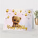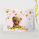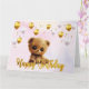 Envía los mejores deseos de cumpleaños con esta tarjeta de felicitación irresistiblemente linda que presenta un adorable osito de peluche rodeado de globos dorados y perlas. Con tonos pastel suaves y grandes ojos brillantes, este diseño encantador es perfecto para niños, adolescentes o cualquier persona que aprecie un toque de dulzura en su día especial. El estilo dibujado a mano añade un toque sincero, lo que hace que esta tarjeta sea ideal para cumpleaños, baby showers o simplemente para alegrar el día de alguien. Ya sea que la regales con un obsequio o la envíes por correo con amor, esta tarjeta de felicitación derretirá corazones y traerá una sonrisa cada vez. Impresa en papel de alta calidad y personalizable en el interior, es tan considerada como hermosa.