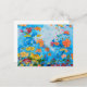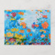 Una tarjeta postal con flores brillantes y un cielo azul de fondo. Para cualquier ocasión, arte original.