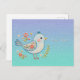 Linda Tarjeta Postal Floral de Pajarito Azul