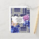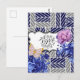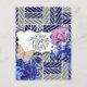 Tarjeta postal floral geométrica azul gris
