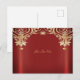 Tarjeta postal floral roja de oro moderno