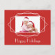 Esta tarjeta de fiestas geométrica inspirada en art deco está personalizada con tu propia foto especial, sobre un fondo rojo que la mantiene festiva y brillante para las fiestas.