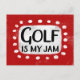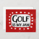 "Golf Is My Jam" es un divertido diseño de texto con una forma de acento blanco rodeada de puntos texturizados caprichosos blancos.