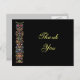 Una tarjeta postal con hermoso arte de manuscrito iluminado gótico de flores y hojas enrolladas sobre un fondo negro. La parte delantera dice Gracias, pero puedes cambiar el texto y elegir el estilo de letra y agregar un mensaje en el reverso.