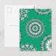 Una tarjeta postal con mi patrón de Mandalas 1, impresa en un fondo verde. Esta versión se centra en mi Diseño 1 Mandala.