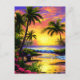 Escape al paraíso con nuestra impresionante postal de playa tropical. Esta postal incluye una acuarela, llena de palmeras y una espectacular puesta de sol. ¡Disfrútalo!
