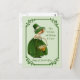 El Vintage design cuenta con un joven chica irlandés con una canasta de suertudos Shamrock. Este wee Colleen está vestido de verde con bonnet y borde de desplazamiento. El diseño ha sido retocado a mano. Texto frontal que dice... ¡Que la suerte y las bendiciones irlandesas sean tuyas! Feliz Día de San Patricio.