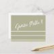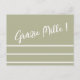 ¡Grazie Mille! Tarjeta postal italiana de agradecimiento con tipografía blanca bonita y rayas blancas sobre un fondo de tono suave en el color que elijas.