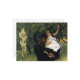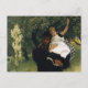 Un padre que lleva un traje azul oscuro carga a su pequeña hija a través del jardín mientras ella se estira para tocar las ramas de los árboles.