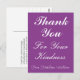 Esta limpia y respetable tarjeta postal de agradecimiento presenta el mensaje "Gracias por su amabilidad" en la parte frontal, junto con un mensaje personalizado en la parte trasera. Podría ser utilizada para mostrar gratitud a alguien que ha hecho algo agradable.
