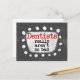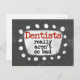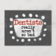 Una divertida pieza tipográfica con temática de odontología con las palabras "Los dentistas realmente no son tan malos". Es gris y blanco con texto negro y rojo y puntos caprichosos blancos que rodean la frase.