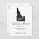 Diseño moderno y elegante de mapa del estado de Idaho en pizarra con corazón y anuncio de mudanza personalizable con su texto. ¡Consulte la tienda de Graphic Art Design para otros productos que coincidan con este diseño!