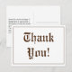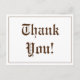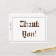 Esta tarjeta postal de agradecimiento con diseño vintage presenta el mensaje "¡Gracias!" en la parte delantera, junto con un mensaje personalizado en la parte trasera. Podría ser utilizada para dar las gracias a alguien que ha hecho algo amable.