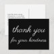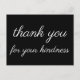 Este diseño de tarjeta postal de agradecimiento nostálgica y antigua presenta el mensaje "gracias por tu amabilidad" en la parte delantera, junto con un mensaje personalizado en la parte trasera. Podría ser utilizada para dar las gracias a alguien que ha hecho algo agradable.