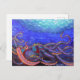 Pintura original de un colorido pulpo submarino deslizándose por el suelo del océano.