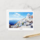 Tarjeta postal con puesta de sol de Oia en la isla de Santorini, vacaciones de viaje por las islas griegas en Europa