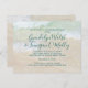 Dos dólares de arena, postal de invitación a la boda de la playa para mantener la planificación simple y económica. Todo el texto va al frente utilizando plantillas con un guión moderno y manuscrito para los nombres y un estilo de fuente impreso. Incluya la información de recepción y el sitio web del boda según sea necesario. Que los invitados respondan en línea y ahorren dinero usando esta pequeña invitación de postal - que necesita menos franqueo! El texto es de color azul-verde. Revertir está en blanco, con un fondo de playa húmedo y dos pequeños dólares de arena en el fondo. Direcciones de escritura a mano o etiquetas de dirección.