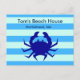 ¡Envíe saludos de verano este verano con una postal personalizada de su casa de playa! Este diseño náutico incluye rayas y un gran cangrejo azul y hará que los destinatarios deseen estar allí.
