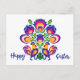 Tarjeta postal de Pascua feliz con composición de Folclore y dos gallos intrépidos y dos huevos de Pascua llamados Pysanka. Diseño inspirado en el arte popular polaco de la región de Lowicz. El texto en la página trasera es totalmente personalizable. Todo lo que necesitas es firmar en la parte inferior y la tarjeta postal única está lista para hacer sonreír a alguien.