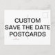 Tarjeta postal personalizada impresa en mate SAVE THE DATE 14,2 cm x 10,8 cm Plantilla en blanco. Diseña, crea, haz la tuya. Tu foto, imagen, texto, logotipo, gráficos en impresión CMYK a todo color de borde a borde en ambos lados de la tarjeta postal. MATE: grosor de 17 pt / peso de 120 lb. Acabado mate liso y blanco claro con textura de cascarón de huevo que es fácil de escribir y no se corre. Hecha e impresa en EE. UU.