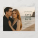 ¿Buscas una forma elegante de anunciar tu boda? Esta tarjeta postal de guardar la fecha con foto personalizable te permite subir tu foto de compromiso favorita mientras mantiene el diseño pulido y moderno. Con una elegante colocación de tipos que se adapta a la ropa oscura y a los entornos de playa, el reverso muestra un patrón atemporal azul chinoiserie para un acabado clásico. Perfecta para bodas en la costa, parejas modernas o cualquiera que quiera un toque refinado y personal.