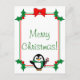 La tarjeta de vacaciones Cute incluye un pingüino personalizado con borde hueco.