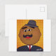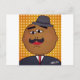 Envía estilo con esta tarjeta postal QUICKDRAW que presenta a Mr. Waffles, un personaje de dibujos animados elegante con un sombrero fedora y traje con la firma VARGAS en un fondo naranja atrevido con lunares. ¡Perfecto para cualquier ocasión!