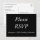 Este respetable y elegante diseño de tarjetas postales RSVP incluye el mensaje "Please RSVP" en la parte delantera, junto con una descripción de la ocasión del personalizable. También incluye un formulario RSVP de personalizable en la parte posterior, junto con una dirección de personalizable a la que se enviarían las tarjetas RSVP completadas. Tarjetas RSVP como esta podrían ser usadas para averiguar quién asistirá a una boda, un fiesta de Navidades, un fiesta de cena o alguna otra celebración.