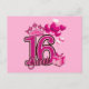 Tarjeta postal rosa de cumpleaños Sweet 16