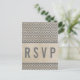 Moderna con un giro vintage es esta Moda Chevron Boda Response Postcard (Postcarta de respuesta de Chevron). Este diseño presenta un fondo de papel antiguo y un patrón de chevron zigzag en gris oscuro. Fácil de personalizar, simplemente añada los detalles de su boda. Haga clic en "Personalizar" para encontrar más opciones de personalización.